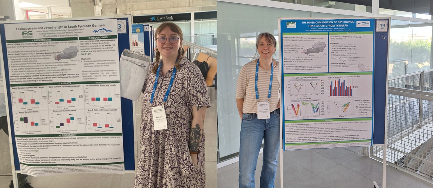 The 6th Phonetics and Phonology in Europe (PaPE) meeting took place June 25-27 at the University of the Balearic Islands in Palma, Mallorca. We were pleased to have two posters accepted for the conference. Aleese Block presented a poster titled “Lexical stress and vowel length in South Tyrolean German” (pdf), examining the way in which duration as a phonetic cue is shared between vowel length and lexical stress in our data from Meran. Marianne Pouplier presented a poster titled “The inner composition of diphthongs: First insights from Tyrolean” (pdf), which described the relationship between the diphthong and monophthong inventories of Tyrolean, illustrated through various metrics.